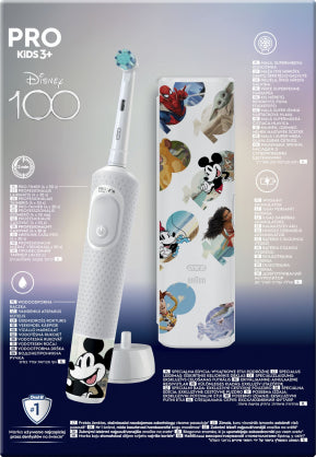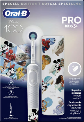 Oral-B Pro Kids elektriskā zobu birste, zobārstu ieteikums bērniem no 3 gadu vecuma, nodrošina saudzīgu, efektīvu tīrīšanu. Ar 2 zobu tīrīšanas režīmiem, tostarp unikālu, bērniem draudzīgu režīmu jutīgiem zobiem, šī zobu birste saudzīgi tīra bērnu zobus. Tā notīra vairāk aplikuma nekā standarta manuālā zobu birste. Iekļautas četras tematiskās uzlīmes, ko var izmantot, lai pielāgotu rokturi.