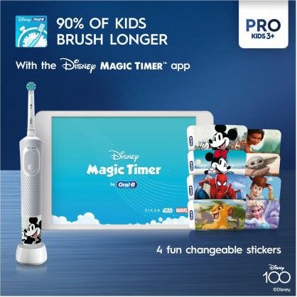 Oral-B Pro Kids 3+ elektriskajai zobu birstei ir iestrādāts taimeris, lai jūsu bērns tīrītu zobus zobārstu ieteiktajās 2 minūtēs, ka palīdz nostiprināt labus zobu tīrīšanas paradumus visai dzīvei. Ik pēc 30 sekundēm tas apstājas, lai norādītu, ka ir laiks pāriet uz nākamo zobu tīrīšanas zonu