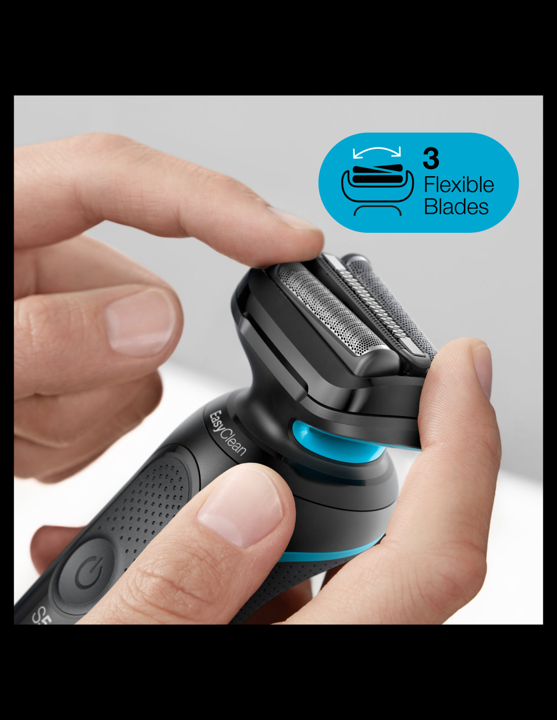 Šī elektriskā skuvekļa 3 elastīgie asmeņi pielāgojas jūsu sejas kontūrām, savukārt Easyclean sistēma ļauj ātri un vienkārši tīrīt - bez nepieciešamības noņemt skuvekļa galvu.
