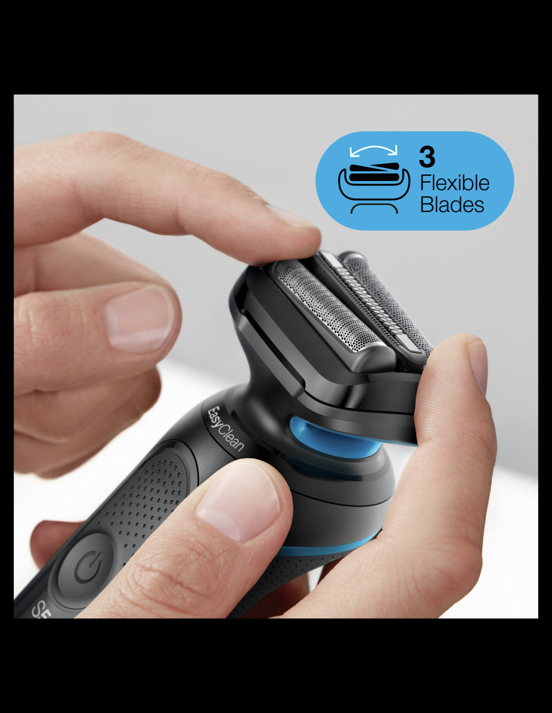Gluda skūšanās tagad ir vienkāršāka – šī elektriskā skuvekļa gtrīs kustīgie asmeņi plūstoši pielāgojas jūsu sejas kontūrām, savukārt “EasyClean” sistēma nodrošina ātru un vienkāršu tīrīšanu, nenoņemot skuvekļa uzgali.