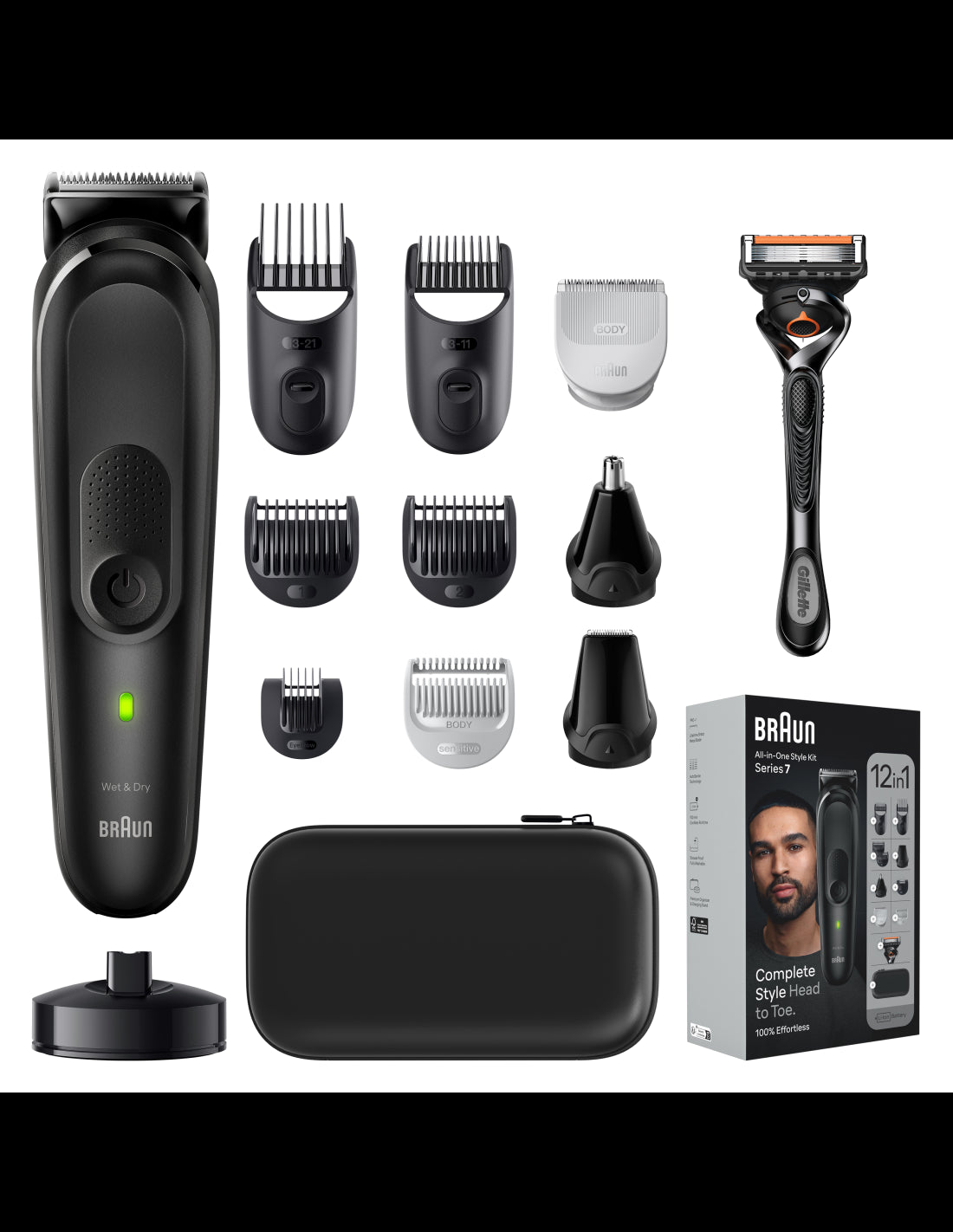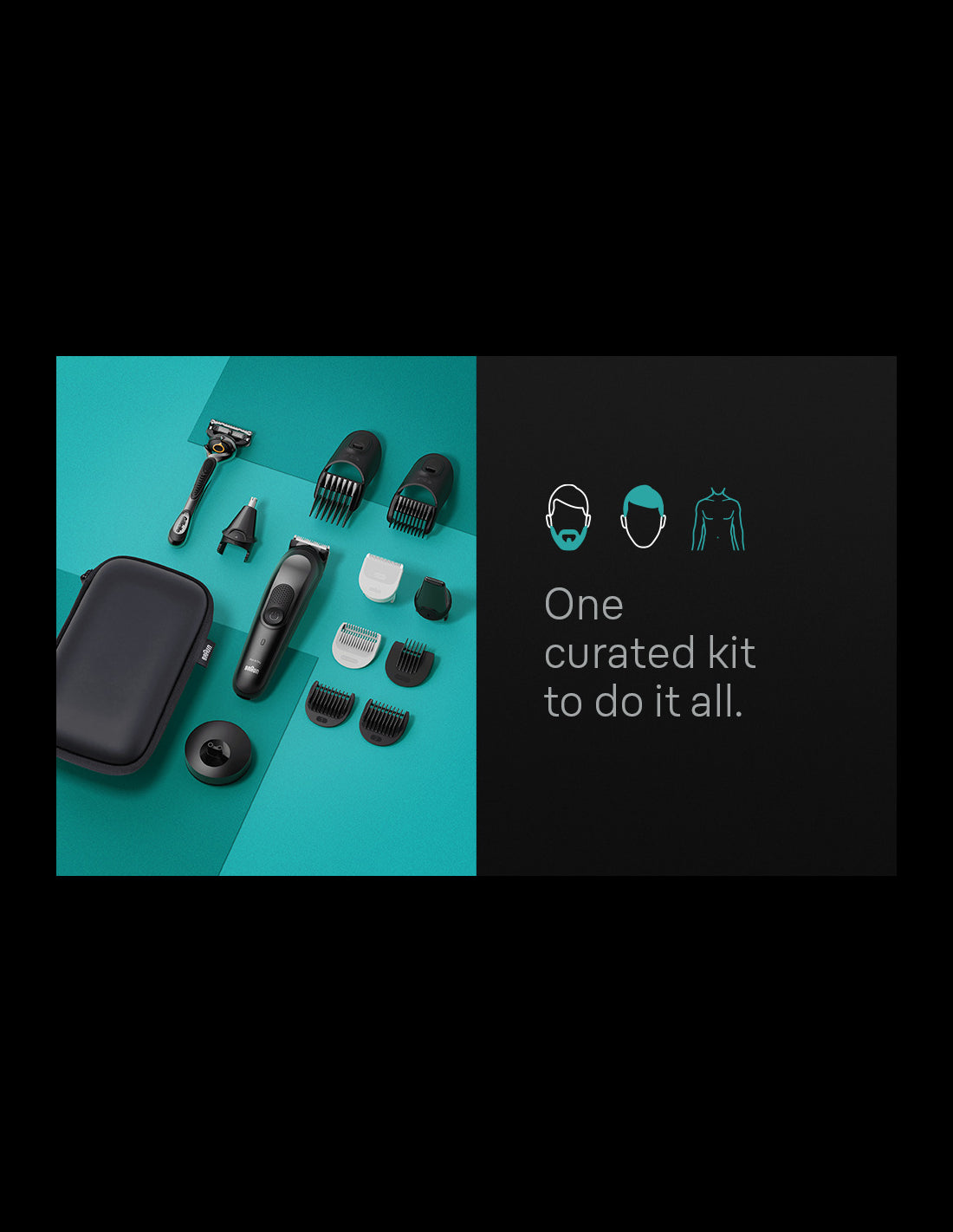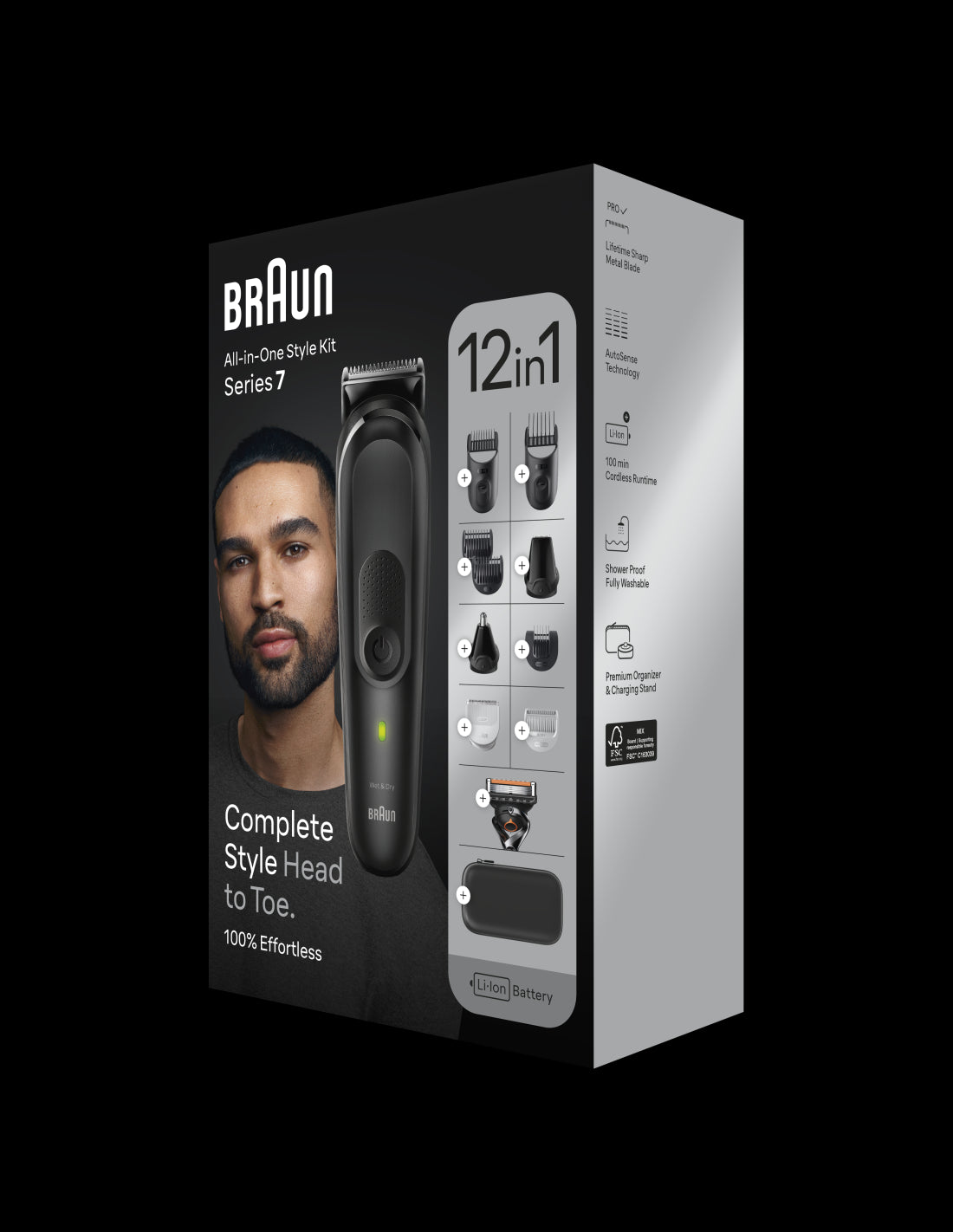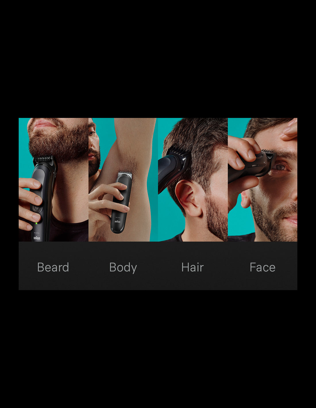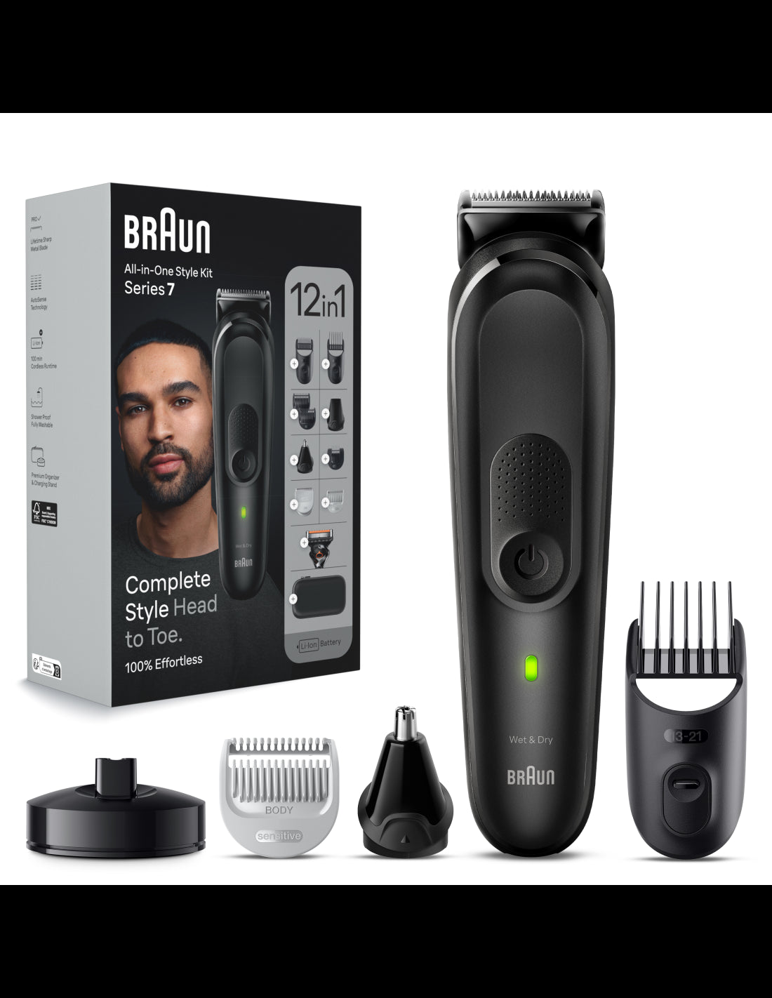 Braun 12 in-1 stila komplekts kopšanai no galvas līdz kājām: izstrādāti rīki bārdas, ausu un deguna apgriešanai, matu griešanai un visa ķermeņa kopšanai.