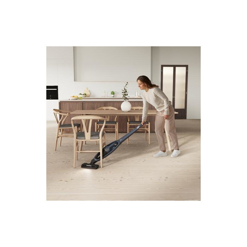 Izbaudiet ērtu un pielāgojamu tīrīšanu, pateicoties ergonomiskajam dizainam. Rokas ierīce ir ērti noņemama no stieņa ātrai un nevainojamai grūti aizsniedzamu vietu tīrīšanai.
