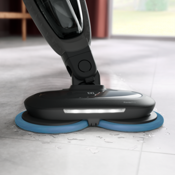 PowerPro mop uzgalis efektīvi mazgās grīdu un atbrīvos no piekaltušiem netīrumiem, pateicoties rotējošajiem sūkļiem.