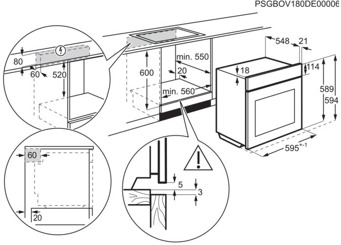 Iebūvēšanas izmēri AxWxD, mm: 590x560x550