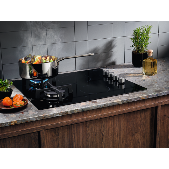 Izmantojot šo kombinēto plīts virsmu, jums ir gan gāzes degļi, gan arī elektriskās karsēšanas zonas, tādēļ jūs varat brīvi izmantot dažādus enerģijas avotus.