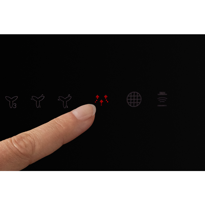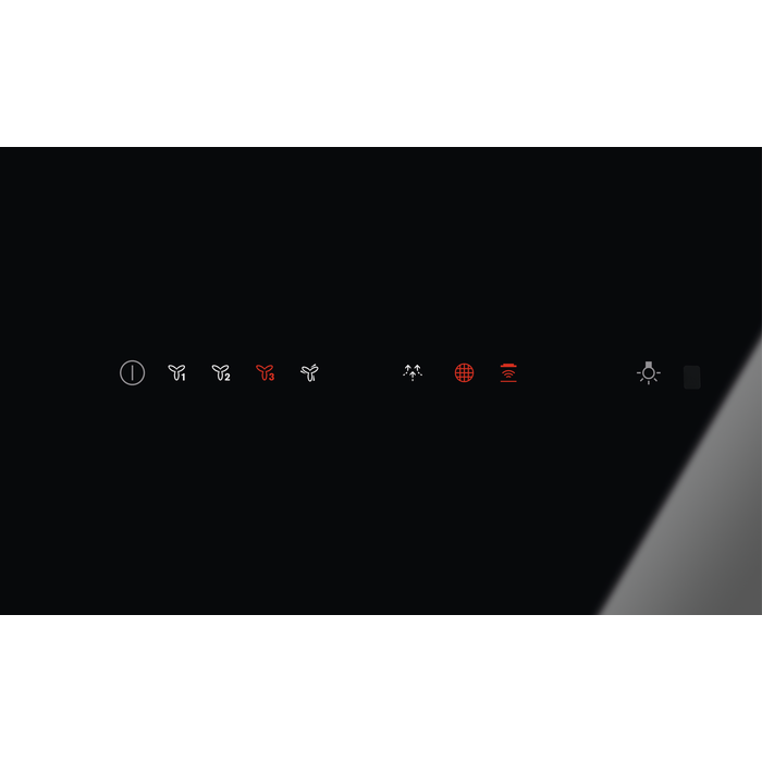 Mūsu stilīgais stikla vadības panelis ir iebūvēts nemanāmi. Elektroniskie skārienvadības elementi ļauj netraucēti un precīzi pārvaldīt tvaika nosūcēja iestatījumus un darbības režīmus.