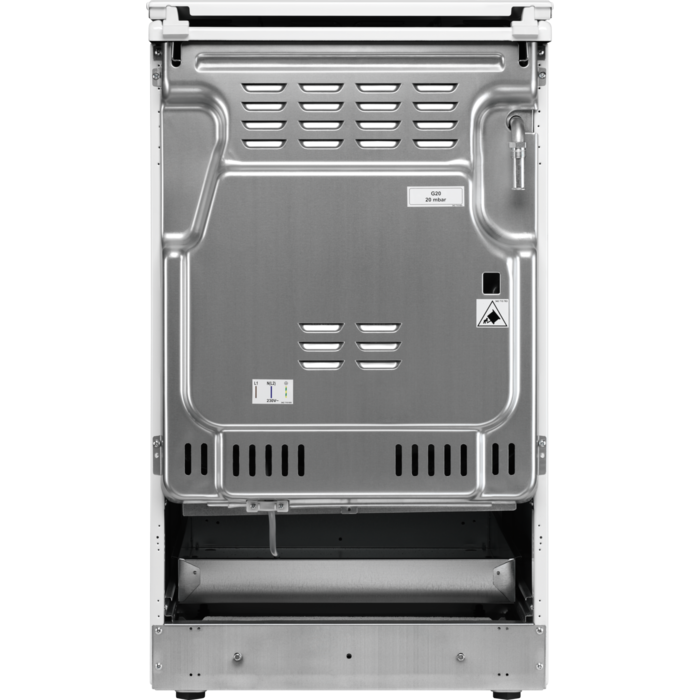 50cm, A, SteamBake, balta, 4 riņķu gāzes virsma ar el.aizdedzi un gāzes kontroli, 58l el.cepeškrāsns ar ventilatoru, 10 karsēšanas režīmi, meh.taimeris, AirFry, stikla vāks