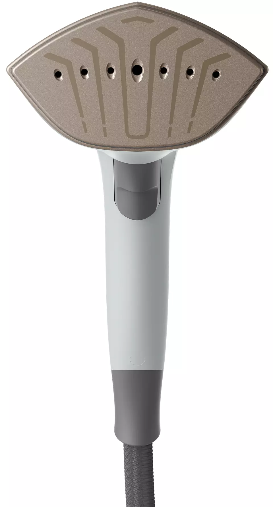 The device's steam plate has triple precision tips that make it easy to work in hard-to-reach places like collars and between buttons.