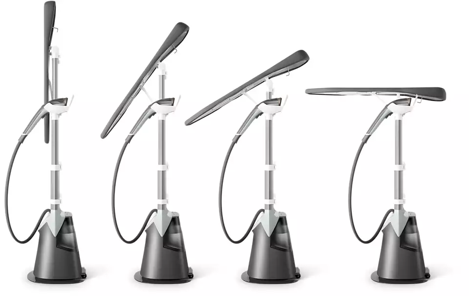The multi-angle ironing board can be rotated to any required position for flexible and comfortable work.
