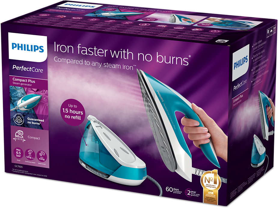Thanks to its compact size, you can easily maneuver it while ironing. It even fits on your ironing board. Don't think that smaller size means less power. Thanks to our exclusive ProVelocity technology, we have made powerful steam generators that are lighter and more compact than ever before.