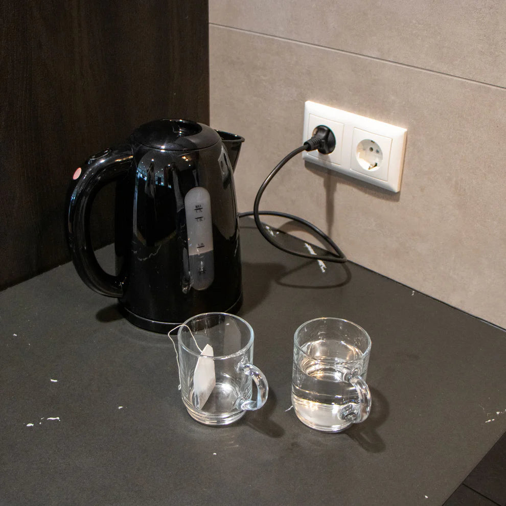 Iebūvēts termostats - tējkanna automātiski izslēdzas, kad ūdens vārās