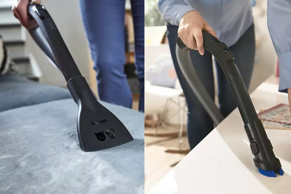 Rokturī iebūvētā suka vienmēr ir pa rokai, lietošanai uz mēbelēm, gludām virsmām un paklājiem. Mēbelēm paredzētais uzgalis ir izstrādāts tā, lai nodrošinātu optimālu mīkstu mēbeļu, piemēram, spilvenu, dīvānu un klubkrēslu tīrīšanu, no tiem notīrot par mājdzīvnieku apmatojumu.