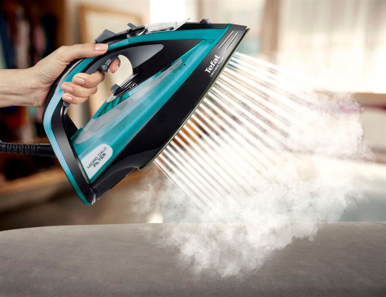 Piedāvājot efektīvu tvaika jaudu Ultimate Pure Steam Iron sistēma, kuru piedāvā Tefal, ir izcils apģērba kopšanas līdzeklis, kas novēršs kaļķu traipu nokļūšanas uz veļas un nodrošina nevainojamus rezultātus. Pilnīgi jaunā Micro-Calc filtru sistēma filtrē 100% tvaika, nodrošinot izcilu kaļķa pārvaldību, kas palīdz novērst atlikumus vai traipus, nodrošinot izcilus gludināšanas rezultātus. 3200W jauda nodrošina ātru sakarsēšanas laiku un mainīga tvaika jauda līdz 60g/min nodrošina augstas efektivitātes gludināšanu, bet 250g/min intensīvais tvaiks tiek galā ar vissnepateicīgākajām krokām. Nr1 gludināšanas virsma Durillium AirGlide Autoclean, kurai nav nepieciešama apkope, kā arī uzlabotajās fukcijas un maksimālās ērtības.