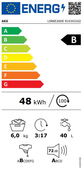 Elektroenerģijas patēriņš, kWh/100 mazg. ciklos: 48