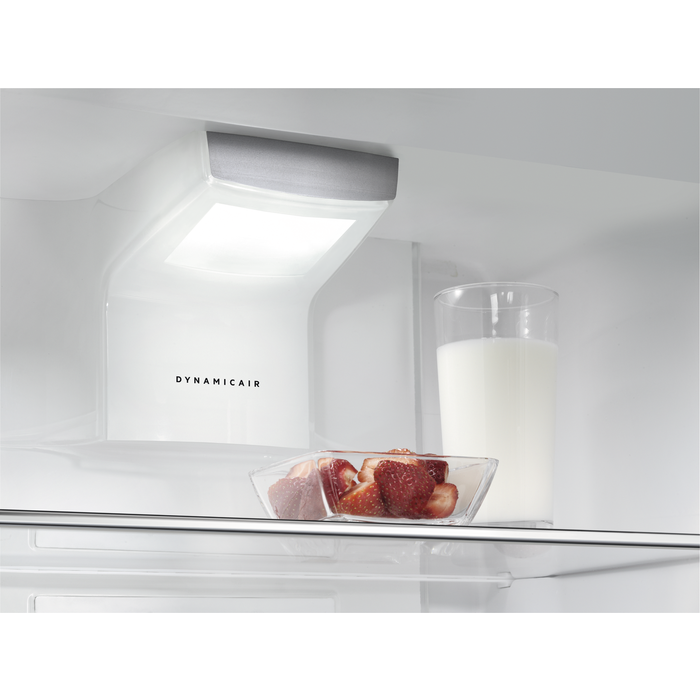 DynamicAir uztur nepārtrauktu gaisa plūsmu, garantējot stabilu temperatūru visā ledusskapī. Katrs plaukts ir vienmērīgi atdzesēts, novēršot siltās zonas, nepieļaujot baktēriju augšanu un saglabājot svaigos produktus.