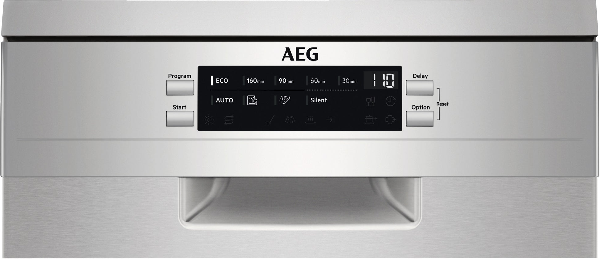 Programmas: 160minūtes, 60 minūtes, 90 minūtes, AUTO Sense, Eco, Extra Silent, Ierīces tīrīšana, Ātrā 30 minūtes, Noskalošana