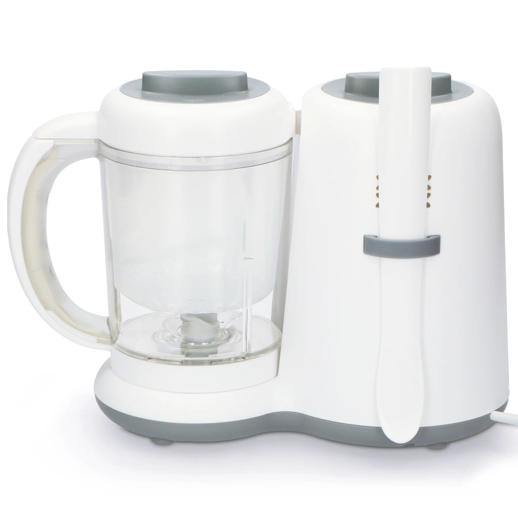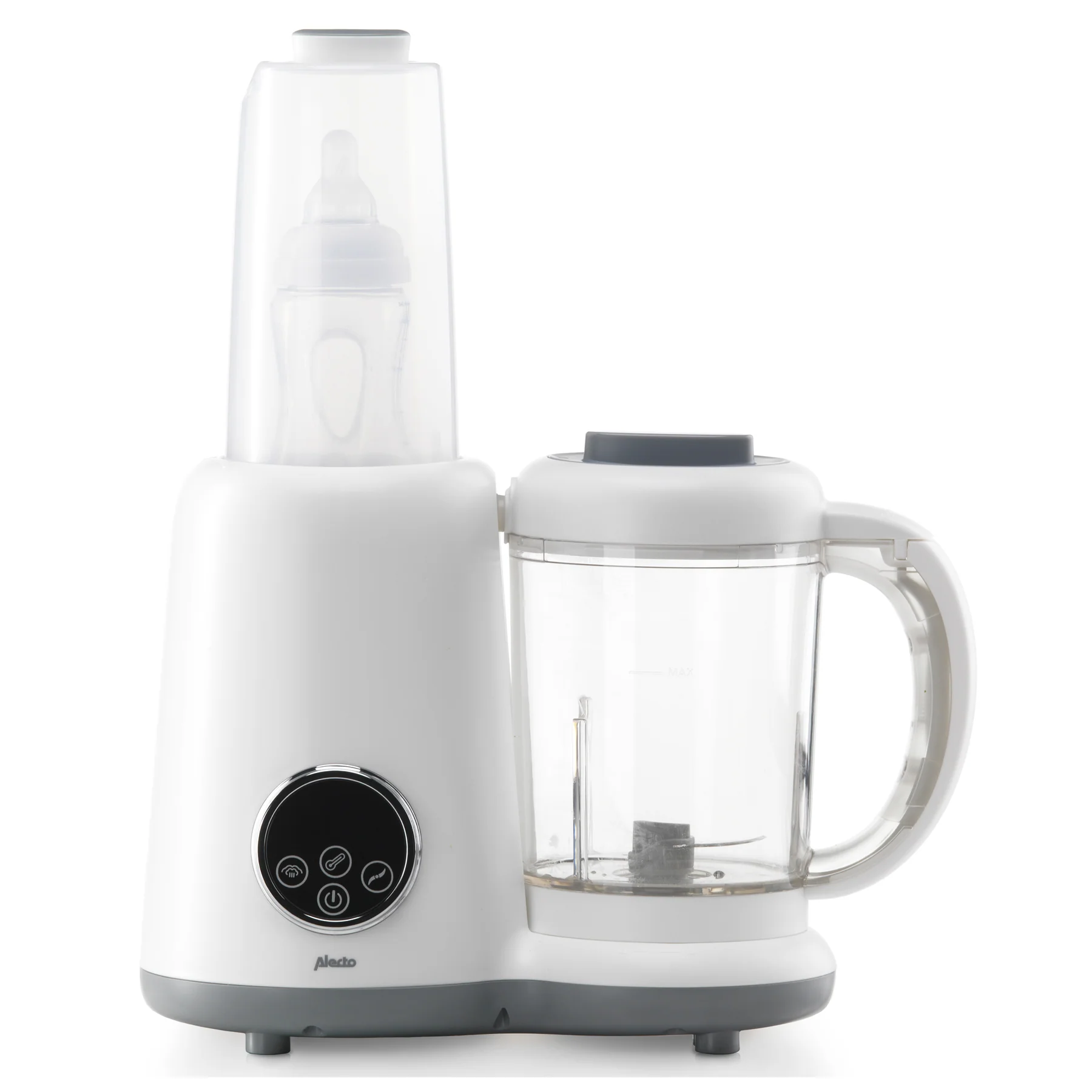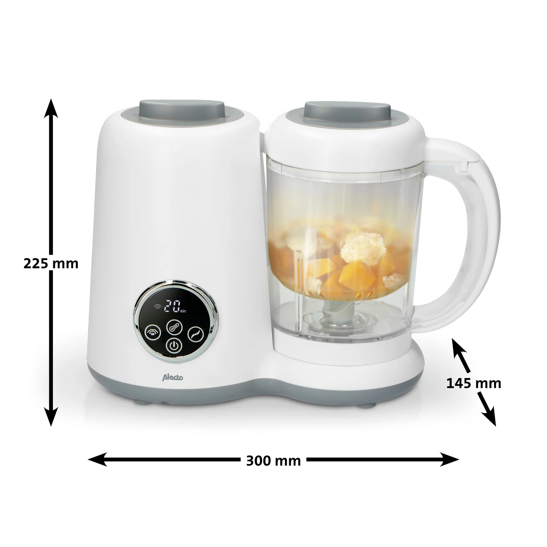 Jūs vēlaties sniegt savam bērnam vislabāko viņa dzīves sākumā un nodrošināt viņu ar uzturvielām bagātiem un veselīgiem produktiem. Turklāt papildus priekšrocība ir tā,ka tas ir ērts un ātrs, lai pagatavotu dažādus veidus ar garšīgām un veselīgām maltītēm.. Jūs varat ne tikai ātri, droši un higiēniski uzsildīt vai sterilizēt pudelītes, iztvaicēt augļus un dārzeņus brīdī, kad jūsu mazulim ir nepieciešams ieturēt maltīti, bet arī šī pārtikas gatavošanas ierīce ir ļoti daudzpusīga, jo tā ļauj pagatavot visdažādākos ēdienus kā arī sterilizēt, piemēram, pudelītes un knupīšus. Drošība un ērtums: ierīce automātiski izslēdzas pēc 40 minūtēm, tāpēc neraizējieties, ja aizmirstat to paši izslēgt. Ar šo bērnu daudzpusīgo un funkcionālo bērnu maltītes pagatavošanas blenderi, mammas un tēti kļūst par lieliskiem vecākiem mazuļa aprūpē, lai sniegtu pašu labāko.