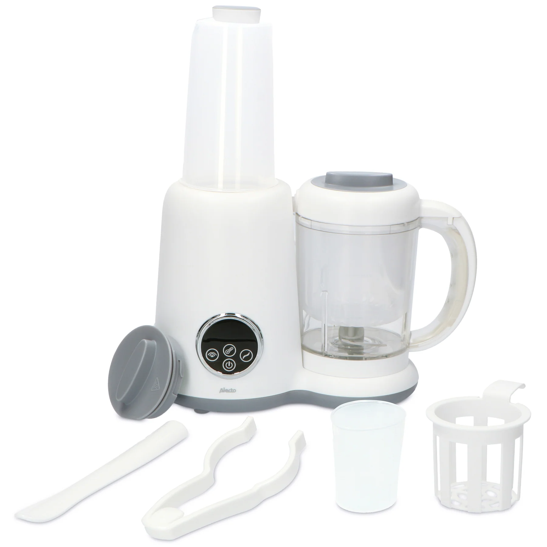 Komplektā blenderim nāk līdzi citi ērti piederumi. Piemēram, standarta komplektācijā ir iekļauts tvaika grozs (650 ml), sterilizācijas grozs ar vāku, mērglāze (120 ml), satveršanas “knaibles” un lāpstiņa. Izvēloties Alecto, Jūs izvēlaties pārdomātu un lietotājam draudzīgu augstas kvalitātes produktu.