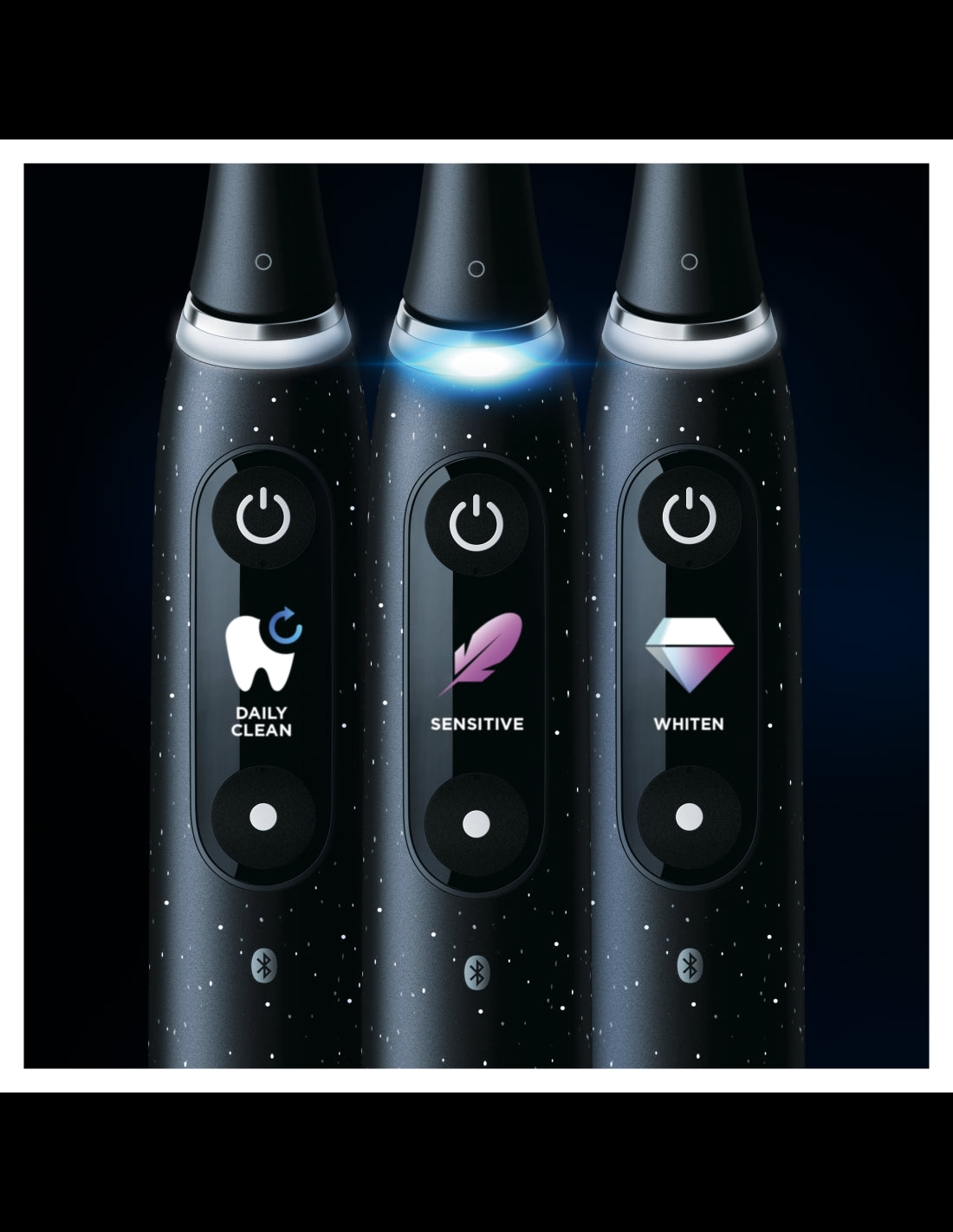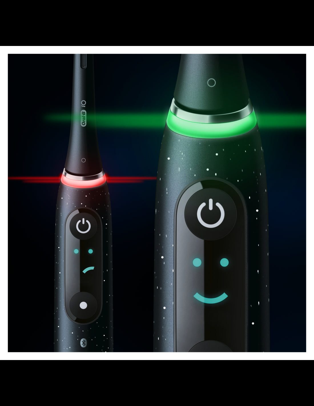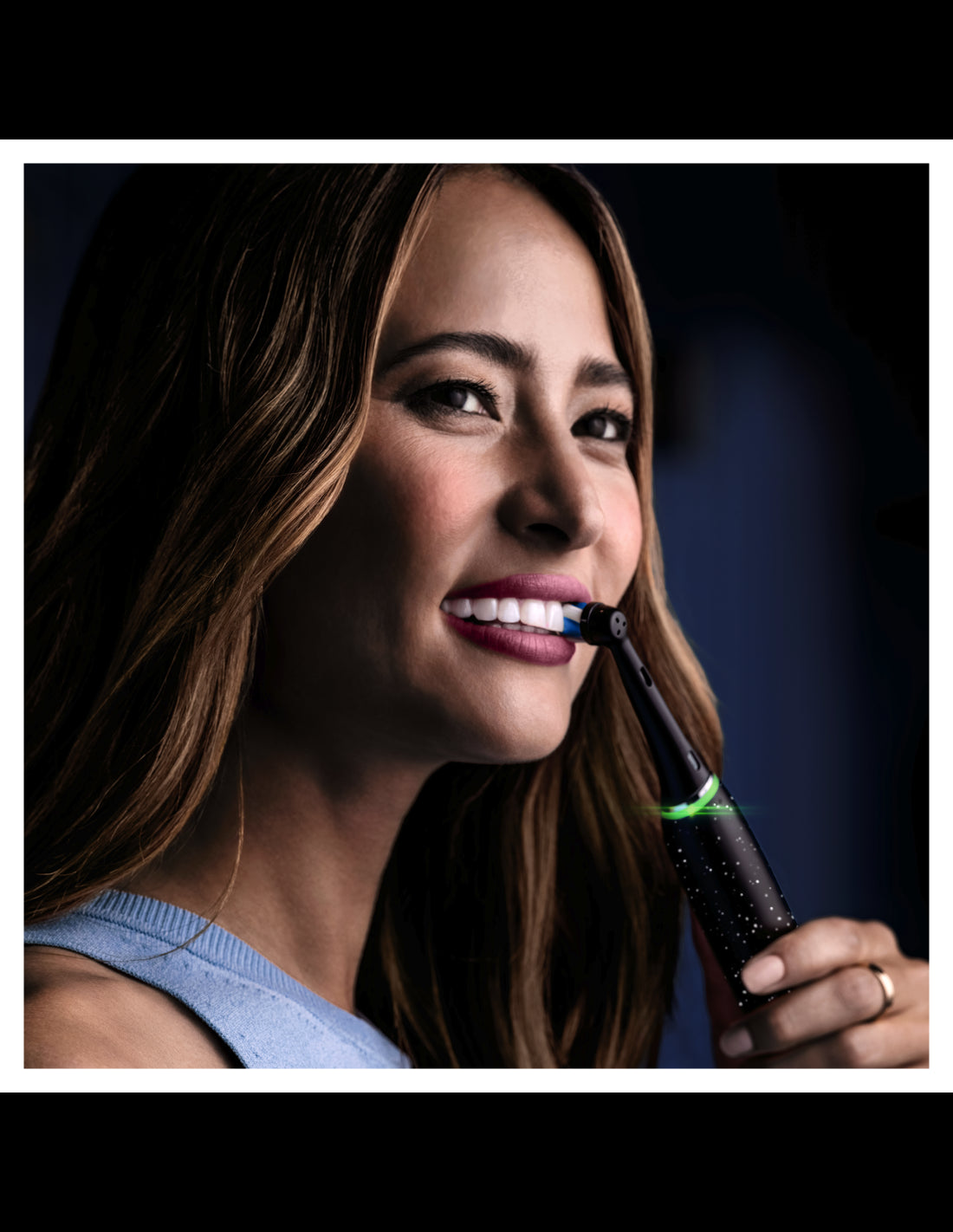iO™ ir Oral-B vislabākā zobu tīrīšanas tehnoloģija, kura apvieno mikrovibrējošo sariņu vienmērīgo enerģiju ar zobārstu iedvesmoto Oral-B apaļo zobu birstes galviņu. To darbina pasaulē pirmā vienmērīgas magnētiskās piedziņas sistēma.