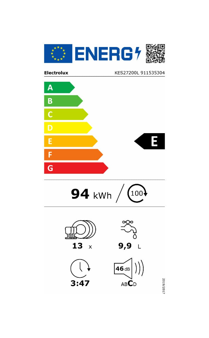 60 cm, E, 13 kompl., 9.9l ūd.p., 6 pr/3 t°, AirDry, satelītsmidzinātājspārns, XtraPower opcija, Machine Care, Auto-Off, invertora motors, 46 dB(A)
