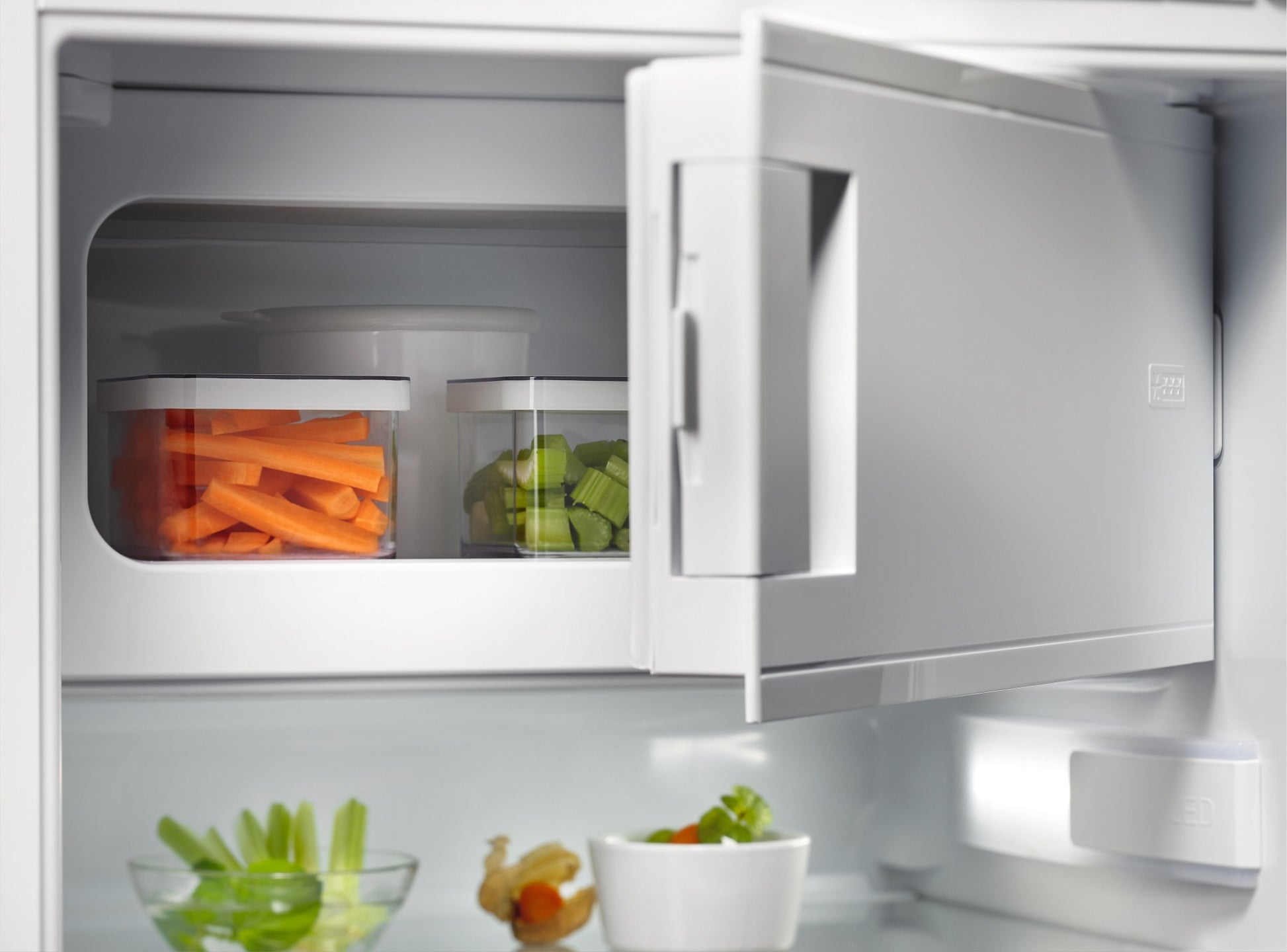 Mūsu ledusskapis ar OptiSpace piedāvā daudz uzglabāšanas iespēju gan augšpusē, gan starp plauktiem. Un, ja jums ir nepieciešams vēl vairāk vietas, atvilktnes var viegli noņemt, lai pielāgotu to savām vajadzībām