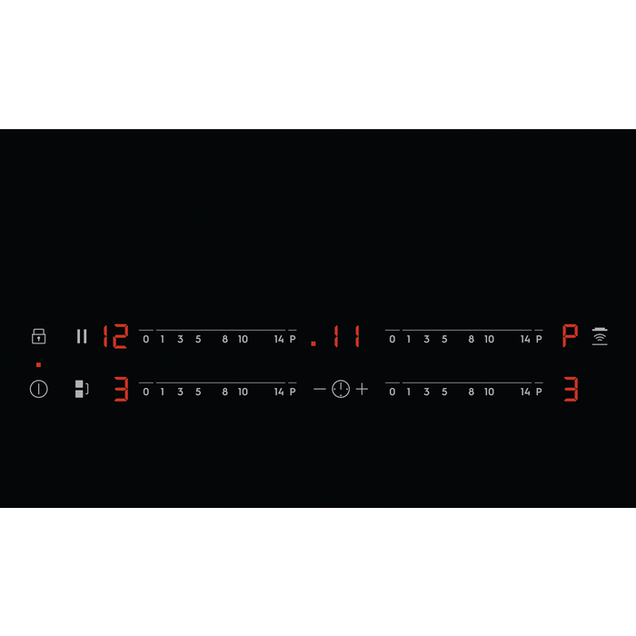 Vadības funkcijas: 3 pakāpju atlikušā siltuma indikācija, skaņas signāls, automātiskā uzkarsēšana, jaudas pastiprināšana, bērnu drošība, laika uzskaites taimeris, eko taimeris, virsmas savienojums ar nosūcēju, taustiņu bloķēšana, kreiso zonu tilts, laika atskaites taimeris, pauze, izslēgt skaņu, taimeris