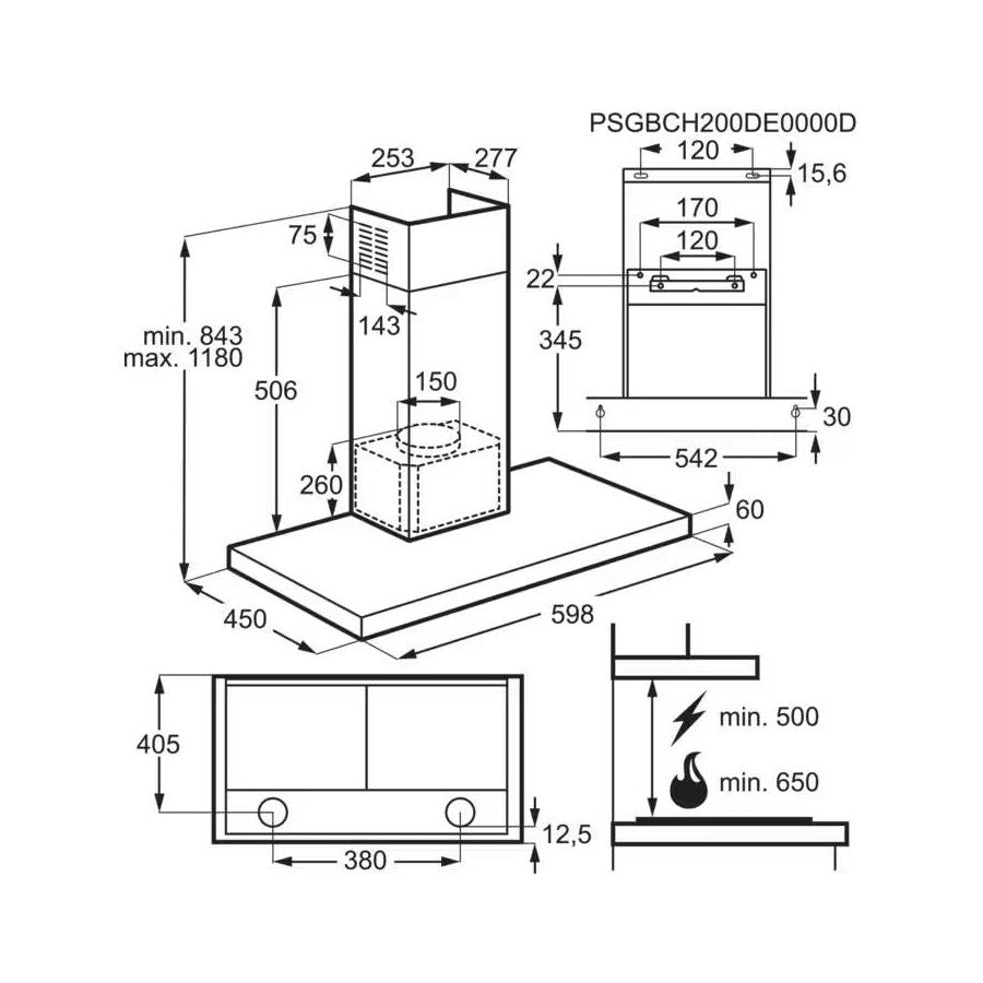 Uzstādīšanas veids: Skursteņa, platums 60 cm