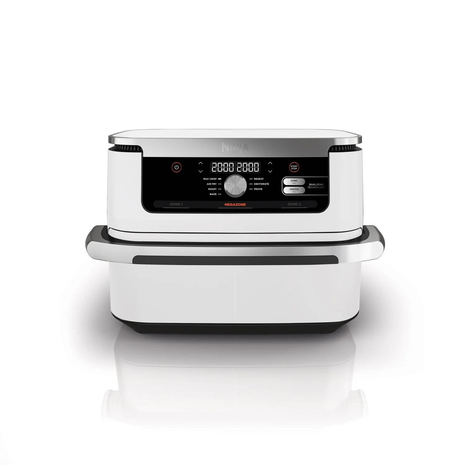 Pagatavojiet galveno ēdienu un sānu ēdienu vienlaicīgi, pateicoties SYNC funkcijai – jums nav nepieciešamas dažādas ierīces, un sānu ēdiens neatdziest, kamēr tiek gatavots galvenais ēdiens! Šī gaisa cepeškrāsns piedāvā arī ideālu risinājumu dažādām uztura vajadzībām vai garšas vēlmēm, ļaujot ikvienam ēst kopā. Funkcija MATCH ļauj dublēt iestatījumus abās zonās. Katrā 5,2 litru zonā var turēt līdz 2 kg vistas vai līdz 1,5 kg frī kartupeļu. Ja jums ir nepieciešams vairāk vietas, vienkārši noņemiet dalītāju un izmantojiet pilnu 10,4 litru MegaZone lielākām maltītēm.