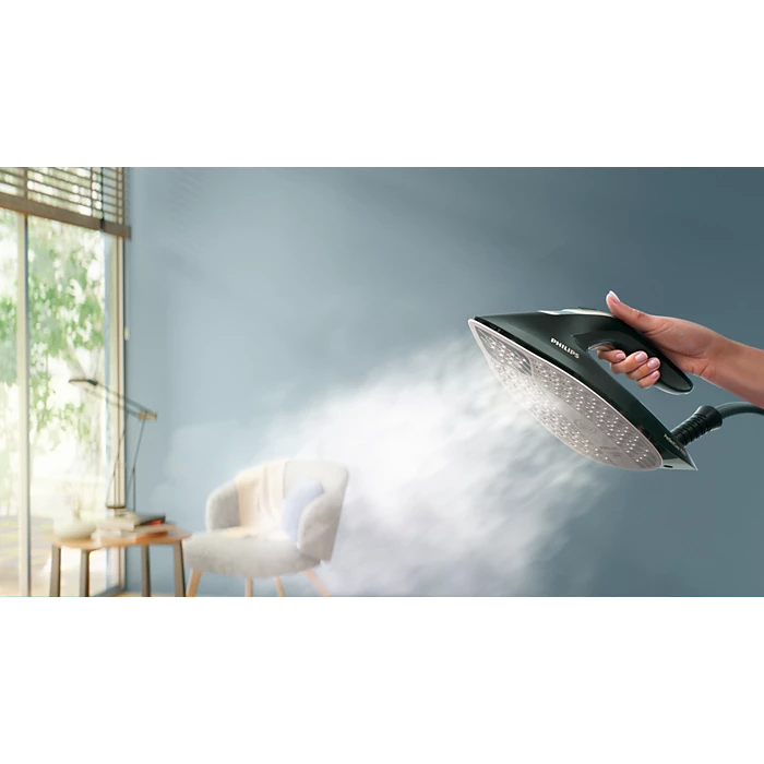 TurboPower tvaika dzinējs labākam gludināšanas procesam un jaudīgāka nepārtraukta tvaika plūsma. TurboPower dzinējs samazina mitrus pleķus uz auduma gludināšanas laikā, lai apģērbus uzreiz var likt skapī, negaidot, kad tie izžūs.