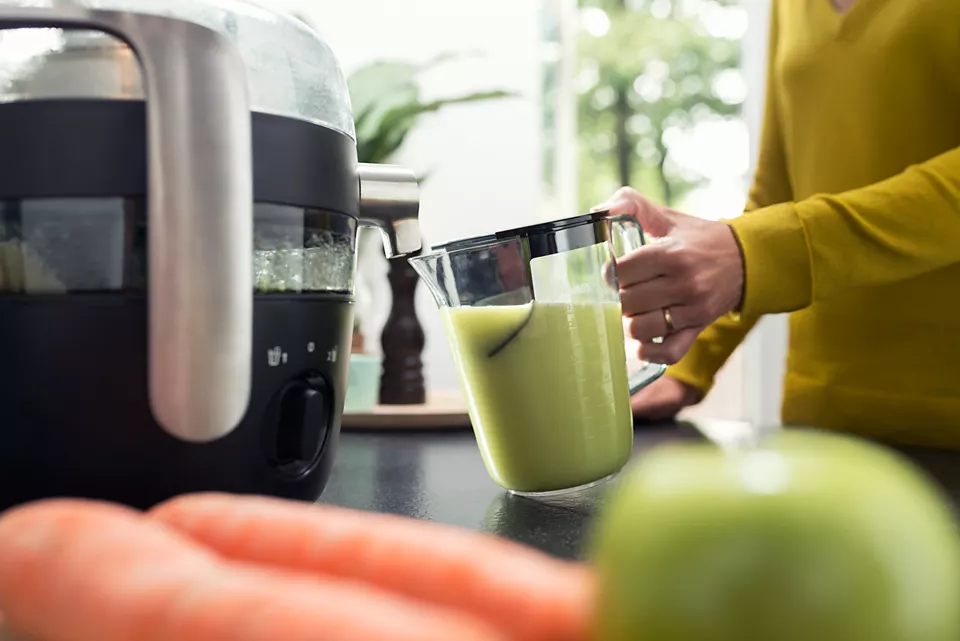 Ar spēcīgo 1000 W motoru bez pūlēm izspiediet sulu no cietākiem augļiem un dārzeņiem.