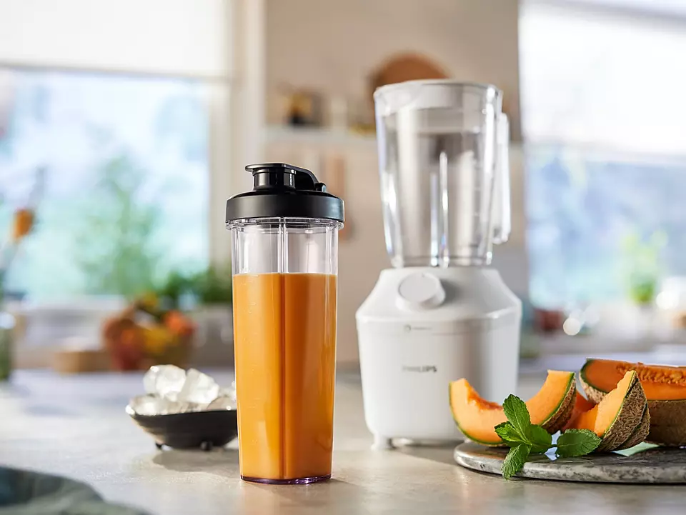 Unikālā ProBlend sistēma nevainojami apvieno 3 tehnoloģijas, kas ir pielāgoti izstrādātas, lai nodrošinātu vienmērīgu rezultātu bez biezumiem jau 45 sekunžu laikā*. Motors ar 450W jaudu virza blendēšanas plūsmu visu sastāvdaļu vienmērīgai cirkulācijai, savukārt inovatīvā lāpstiņu konstrukcija ir izveidota īpašā formā, lai maksimāli palielinātu griešanas laukumu. Ne mazāk svarīga ir trauka konstrukcija ar unikālām ribām, lai sastāvdaļas pastāvīgi ievirzītu atpakaļ blendēšanas plūsmā.