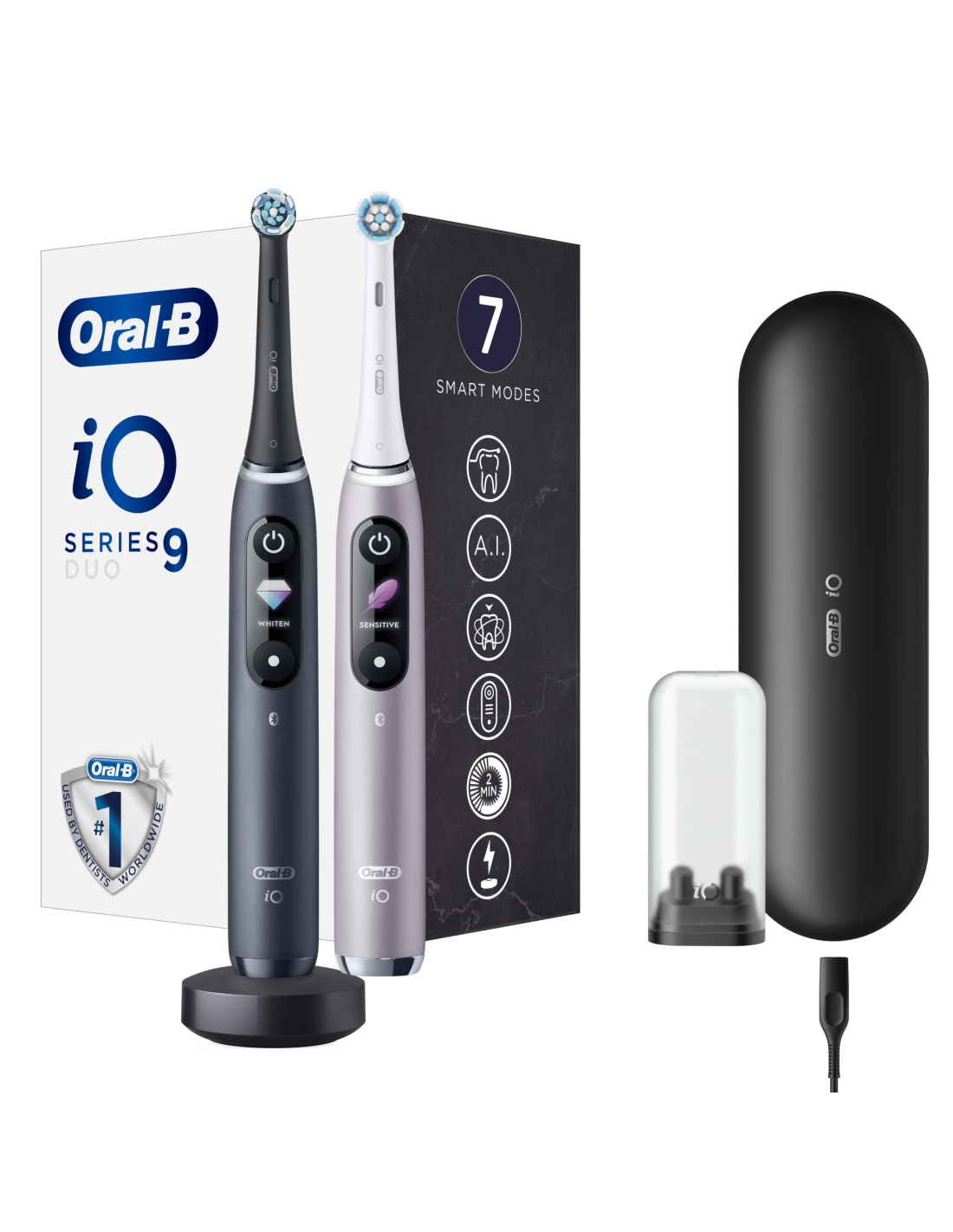 iO™ ir Oral-B vislabākā zobu tīrīšanas tehnoloģija, kura apvieno mikrovibrējošo sariņu vienmērīgo enerģiju ar zobārstu iedvesmoto Oral-B apaļo zobu birstes galviņu. To darbina pasaulē pirmā vienmērīgas magnētiskās piedziņas sistēma.
