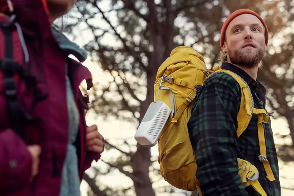 Sērfojiet! Skrieniet! Dejojiet! Boksējieties! Neatkarīgi no aktivitātes šis ūdensdrošais skaļrunis ar pievilcīgu divu toņu dizainu ir gatavs jūs pavadīt. Kaut arī tam ir kompakts izmērs, jūs iegūstat spēcīgu skaņu, savukārt auklas siksna atvieglo skaļruņa pārnēsāšanu. Aiziet!