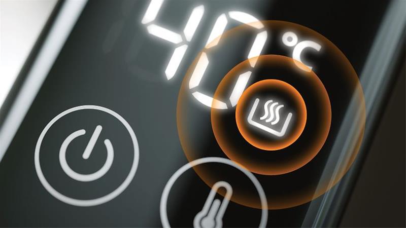 Temperatūras vadība: 6 iestatījumi, no 40 līdz 100 °C