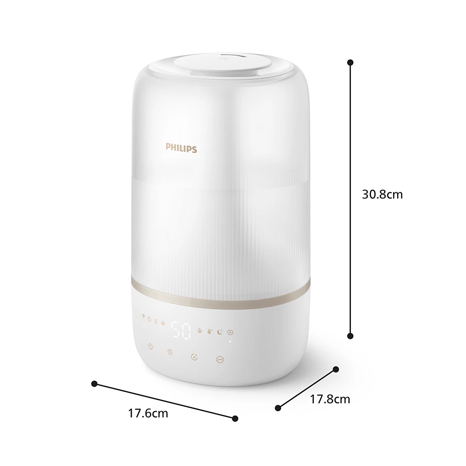 Līdzsvarots mitruma līmenis, kas palīdz uzlabot ieelpotā gaisa kvalitāti. Šis mitrinātājs ir izveidots, lai mazinātu sausa gaisa radīto diskomfortu, piemēram, ādas, lūpu, nāšu un acu sausumu, kā arī kairinājumu kaklā, aizliktu degunu un statisko elektrību. Tas palīdz nodrošināt labu mitruma līmeni telpaugiem, tādējādi veicinot veselīgāku vidi mājās.
