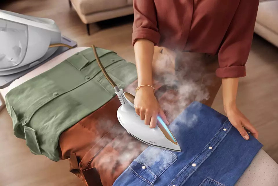 Vienmēr ideāli temperatūras iestatījumi, nav atsevišķi jāiestata manuāli temperatūru. Gludināšana ir droša un paredzēta jebkuram auduma tipam
