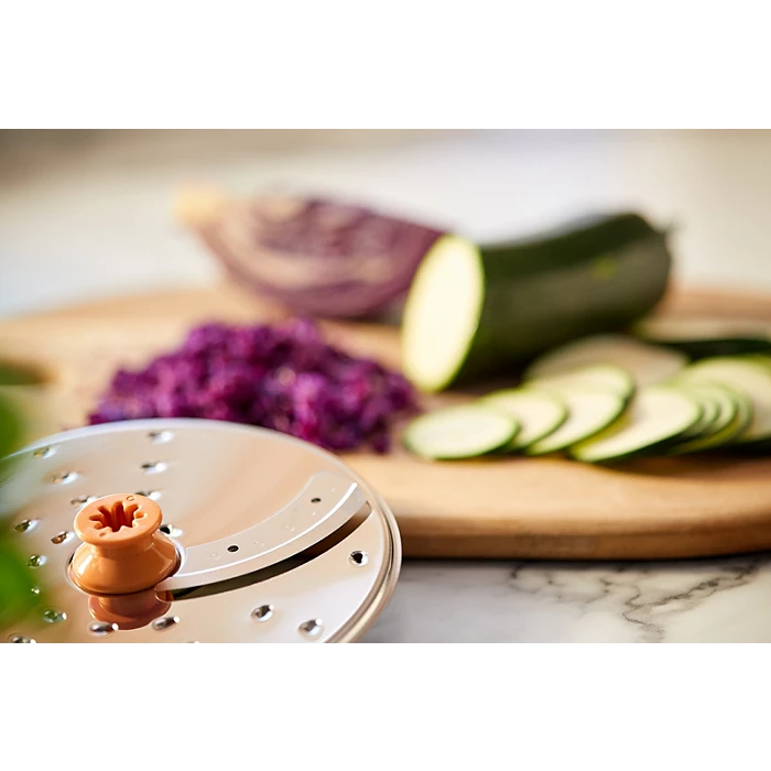 Pateicoties vairāk nekā 29 funkcijām, jūsu gatavošanas iespējas ir neierobežotas: ēdieni, maize, mērces, sulas un citi ēdieni vai dzērieni. Izmantojiet ierīces augstās kvalitātes daudzfunkcionālos piederumus, lai sasmalcinātu, sakultu biezenī un samaltu sastāvdaļas (S formas asmens), vai vienkārši sagrieziet šķēlēs un sarīvējiet tās (disks “divi vienā”).